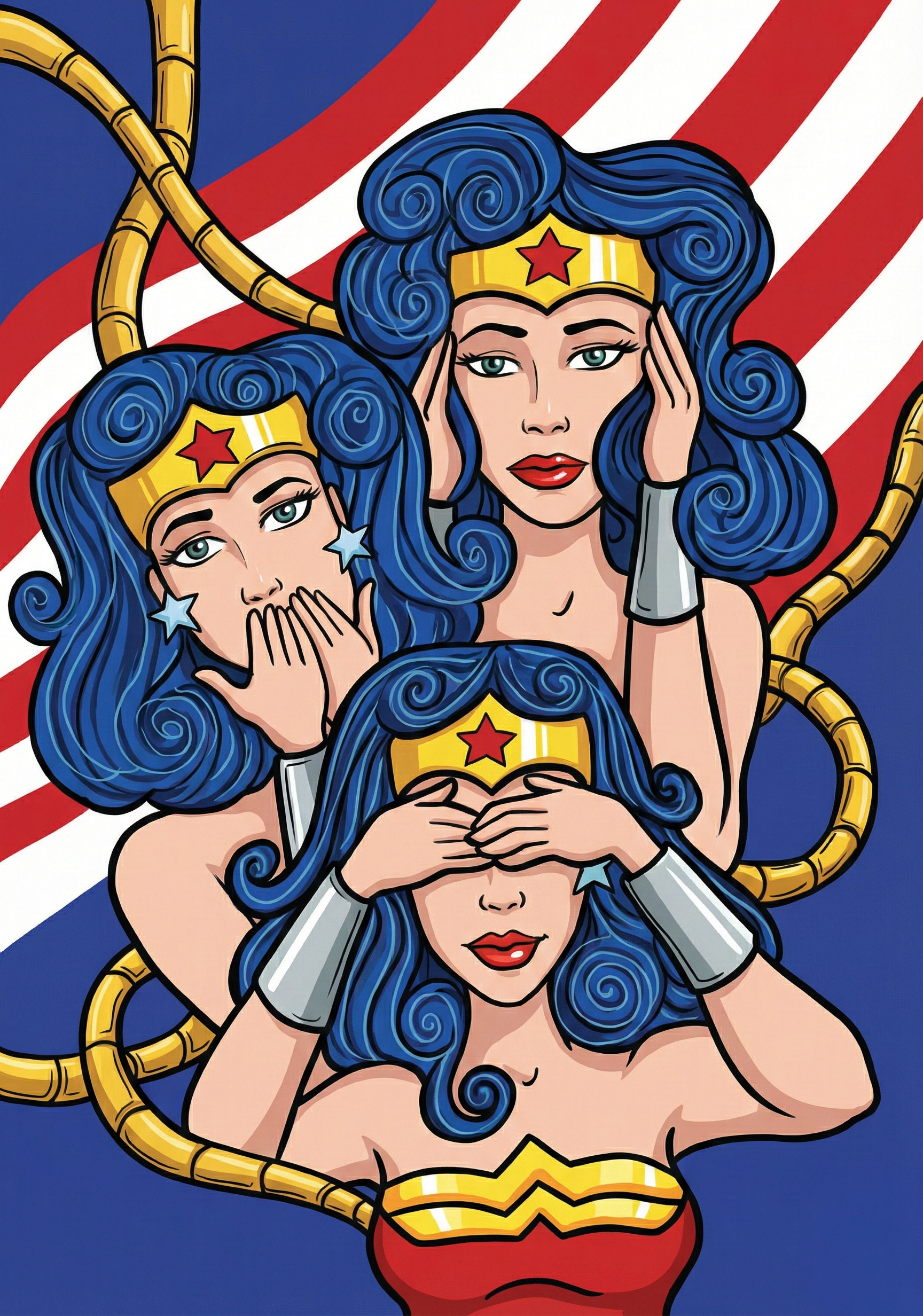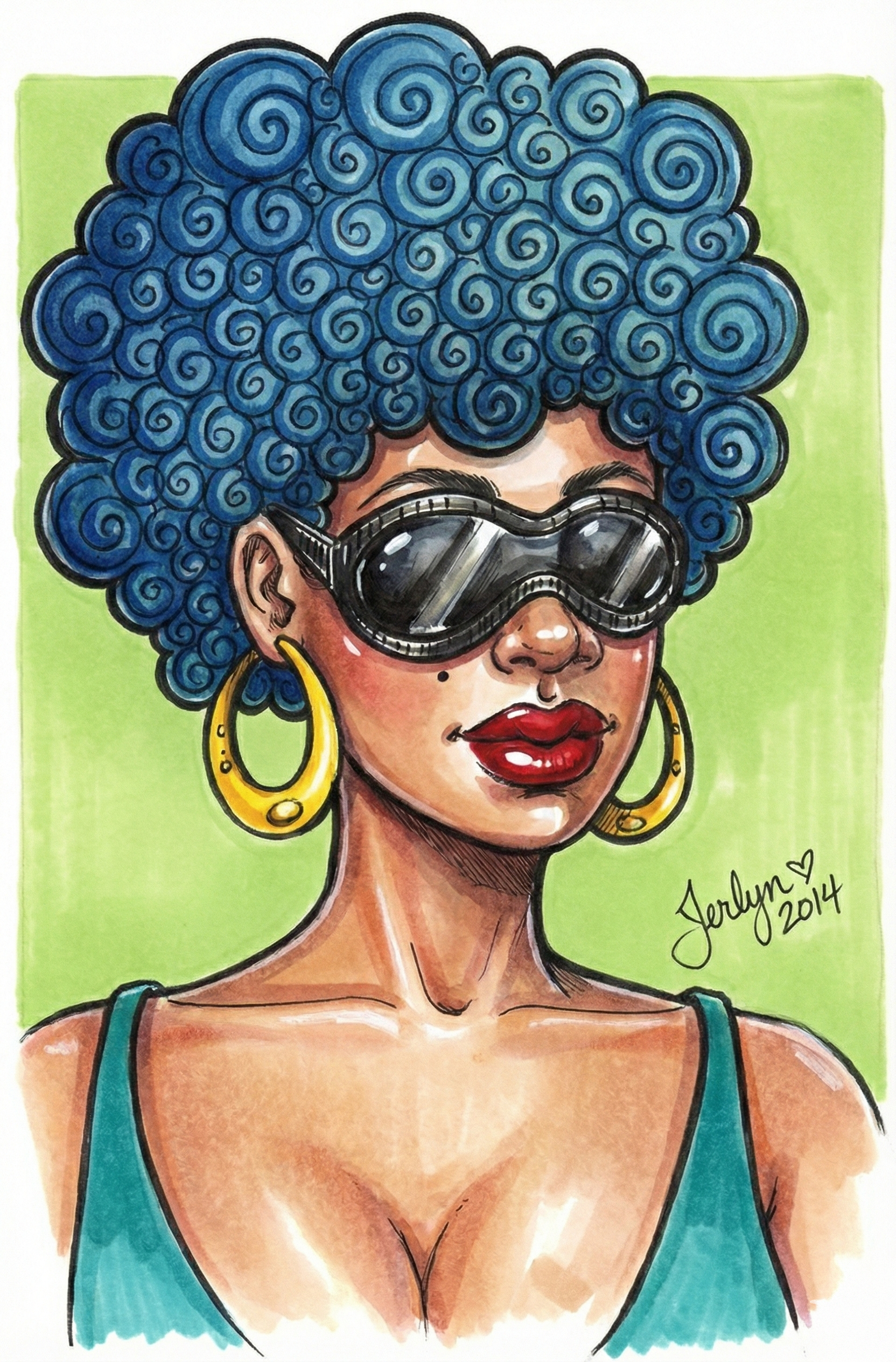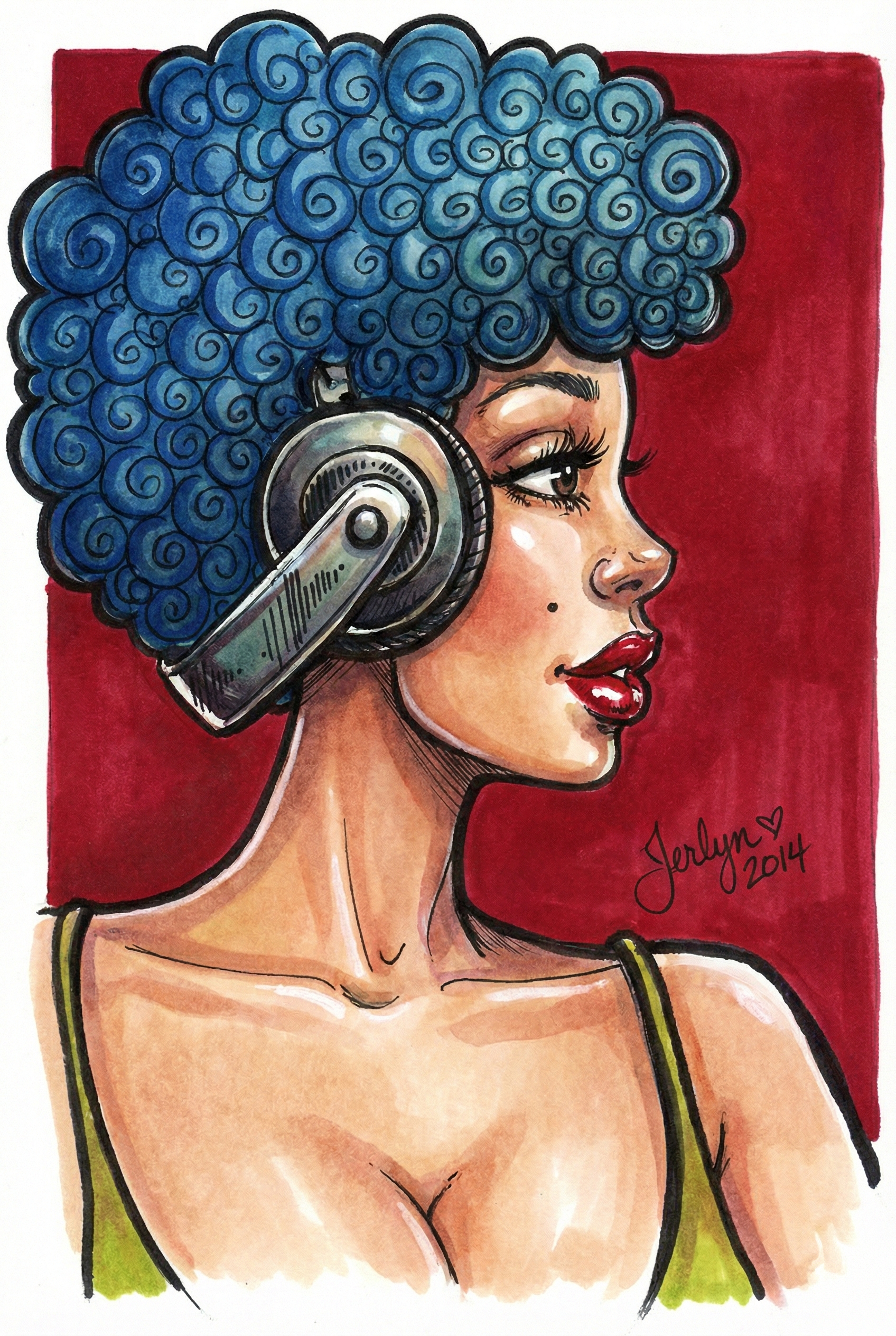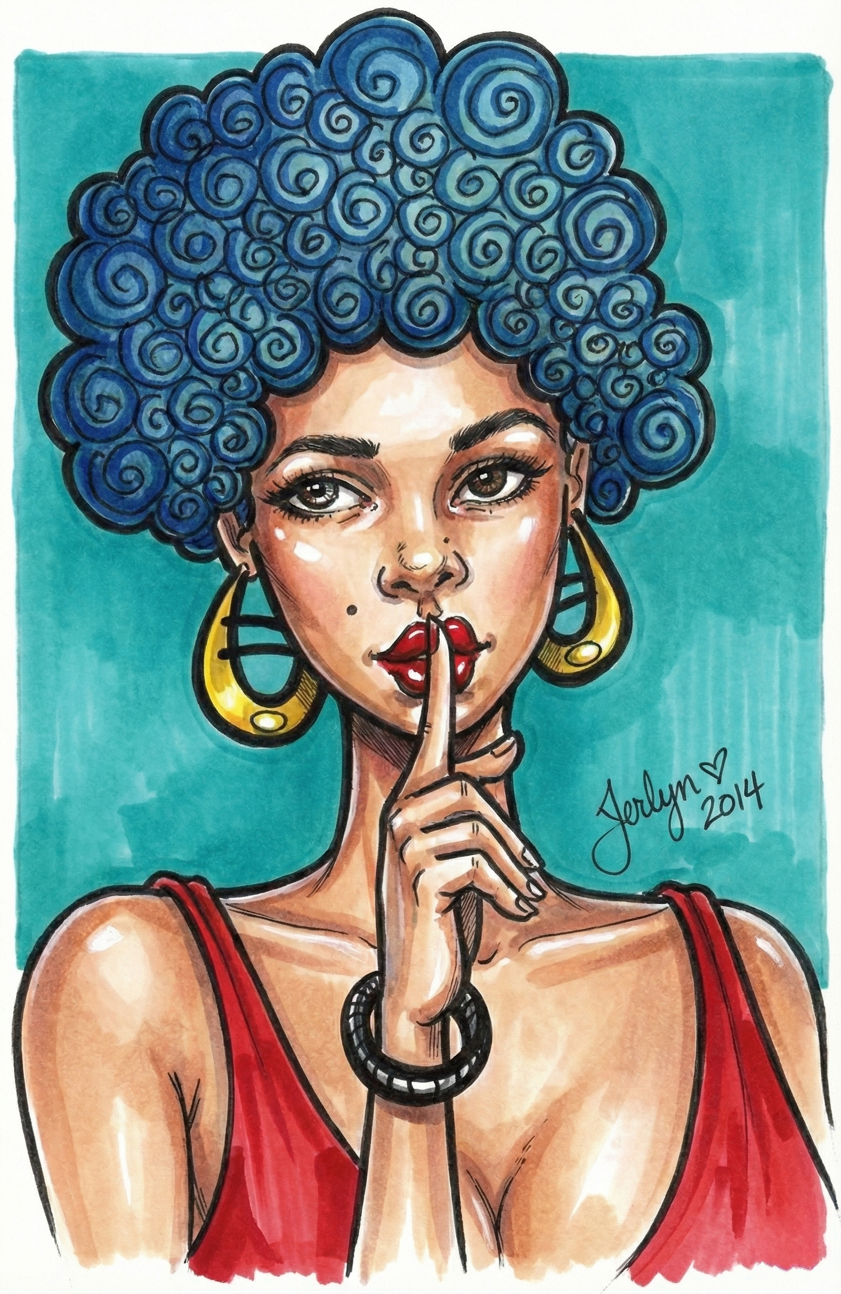 For this series, I wanted to move away from the traditional depiction and reinterpret the motif through a contemporary lens. Using vibrant markers and ink, I used a stylized female portrait with distinct blue curly hair as my canvas. By applying these ancient poses to a modern figure, I explored the timeless relevance of consciously filtering out negativity in today's world.